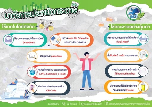 - มีการประหยัดพลังงานและทรัพยากร โดยปฏิบัติตามมาตรการอนุรักษ์พลังงานและสิ่งแวดล้อม ประกาศ ณ วันที่ 7 พฤศจิกายน 2565 ลงนามโดยนางสาวปัทมา นพรัตน์ ผู้อำนวยการกองหอสมุดและศูนย์สารสนเทศวิทยาศาสตร์และเทคโนโลยี มาตรการอนุรักษ์พลังงานและสิ่งแวดล้อม