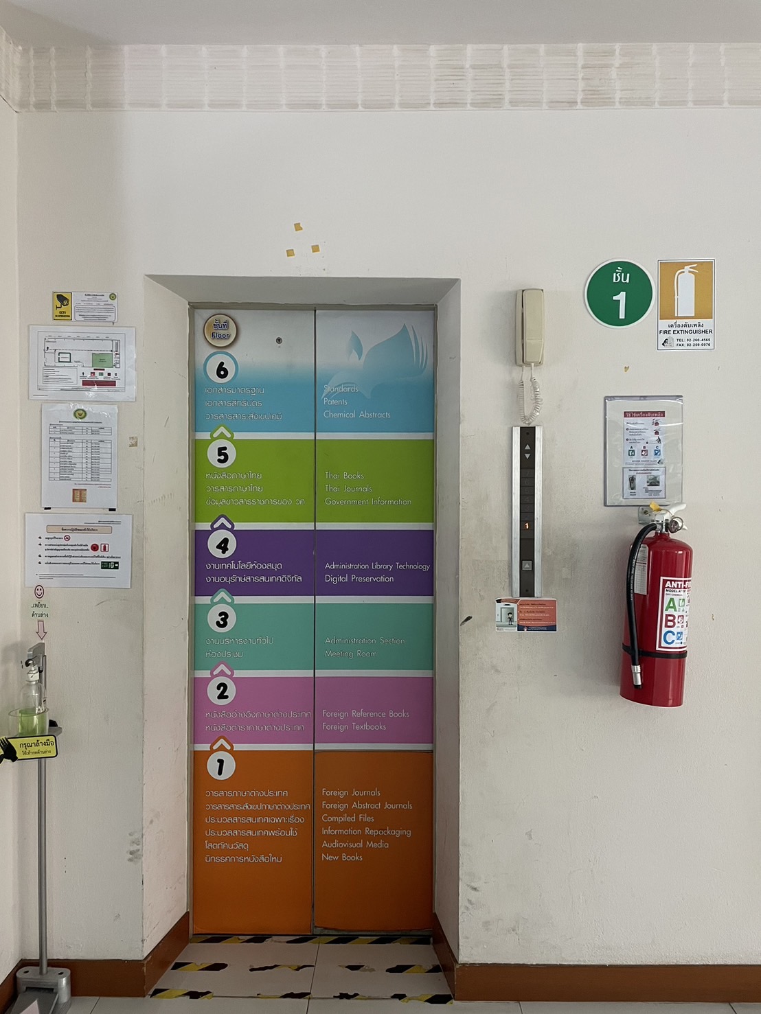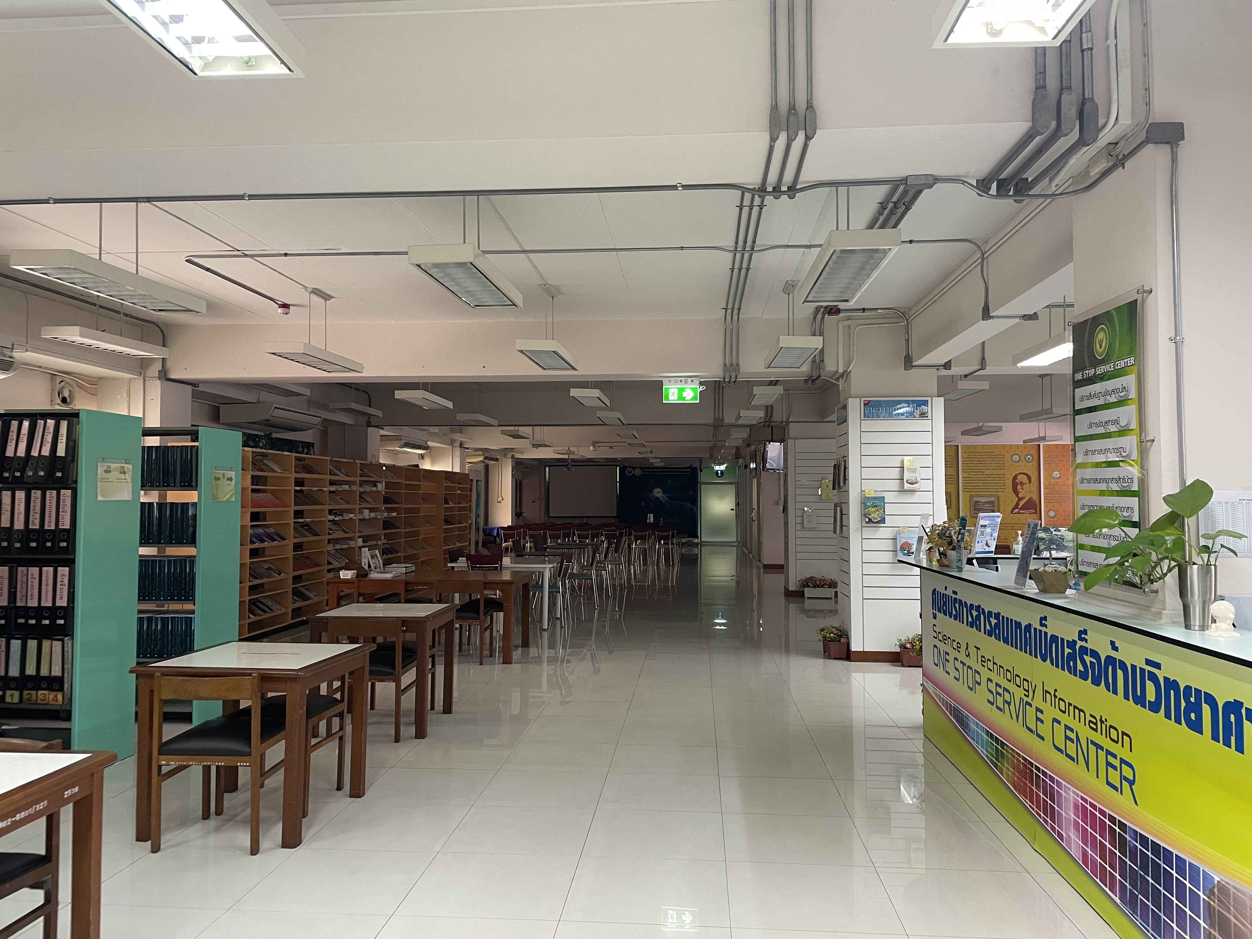 มีการจัดชั้นวางและจัดวางสารสนเทศให้เป็นระเบียบ มีการจัดพื้นที่บริการให้มีความปลอดภัยโดยมีการติดตั้งสัญญาณไฟฉุกเฉินและติดตั้งถังดับเพลิงไว้ทุกชั้นบริการ และมีการตรวจสอบสภาพให้พร้อมใช้งานเป็นประจำ