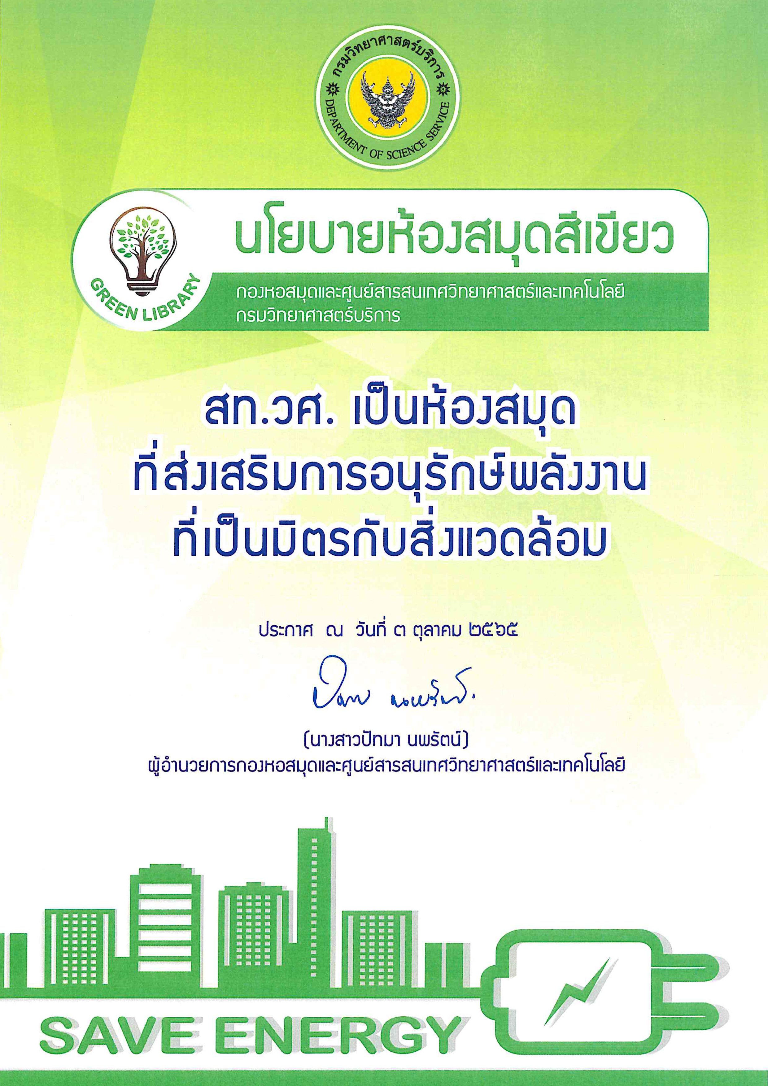 “สท.วศ. เป็นห้องสมุดที่ส่งเสริมการอนุรักษ์พลังงาน ที่เป็นมิตรกับสิ่งแวดล้อม”