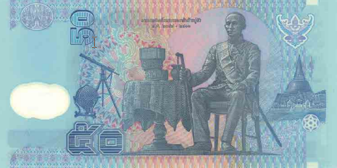 *1 ธนบัตรแบบสิบห้า ชนิด ๕๐ บาท รุ่น ๑ มี ๒ ชนิด ชนิดที่ ๑ เริ่มออกใช้วันที่ ๑๘ สิงหาคม ๒๕๔๐ พิมพ์บนวัสดุพอลิเมอร์ และชนิดที่ ๒ เริ่มออกใช้วันที่ ๑ ตุลาคม ๒๕๔๗ พิมพ์บนกระดาษ ด้านหลังธนบัตรจะมีลูกโลกดาว เครื่องราชบรรณาการจาก สมเด็จพระนางเจ้าวิกตอเรีย แห่งอังกฤษ ส่งมาถวายเมื่อพุทธศักราช ๒๓๙๘
